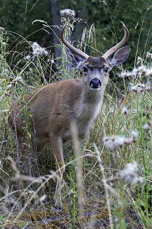 While I was walking a trail out to where my three companions were at, I came across a black-tailed buck who allowed me to get fairly close to him to take his picture. With no natural enemies and no hunting allowed on the island, the deer have little to fear from the human interlopers, so they're not very skittish.